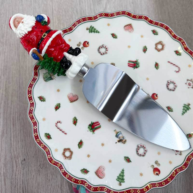 Faca de bolo com pai natal no cabo.